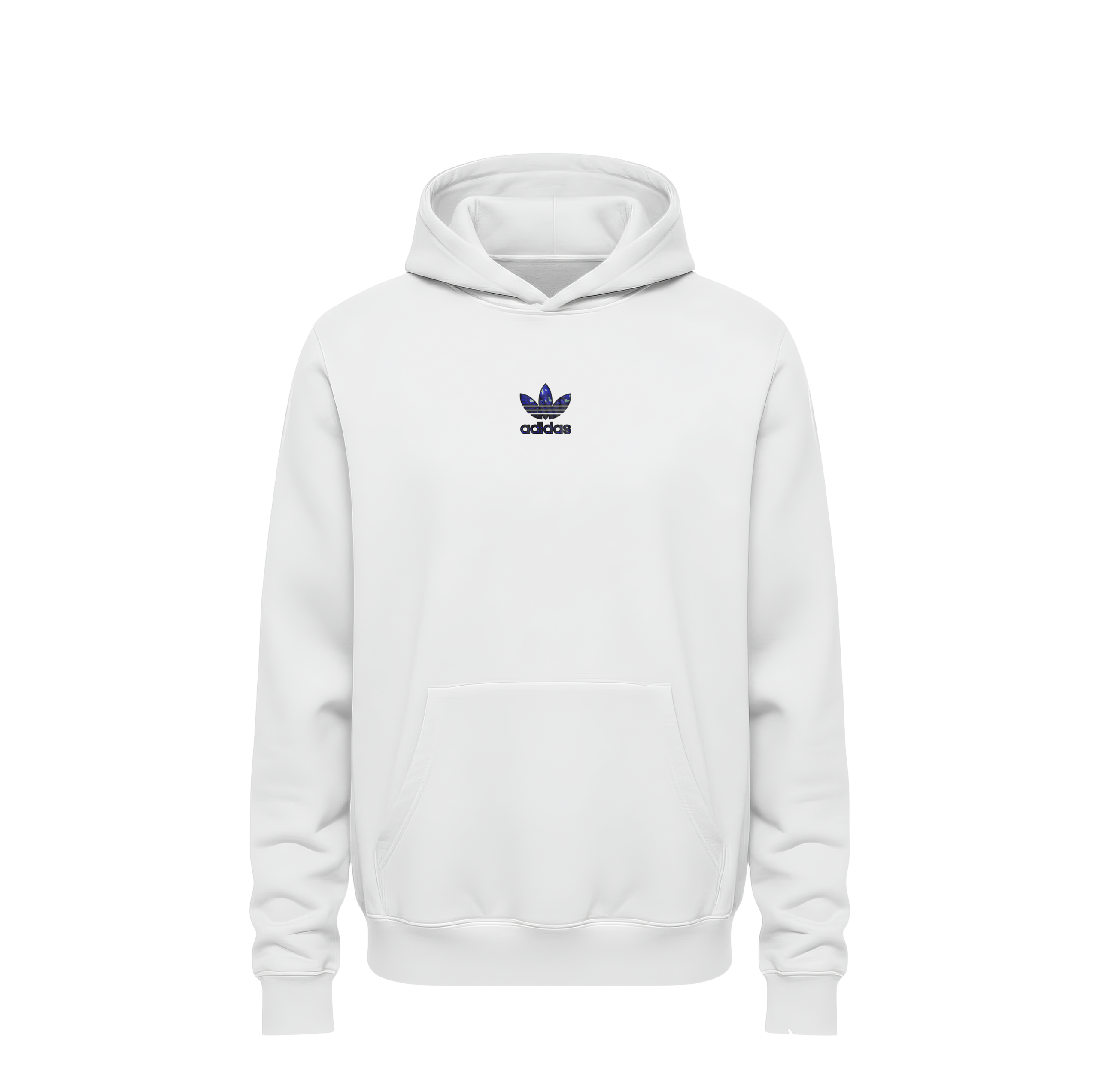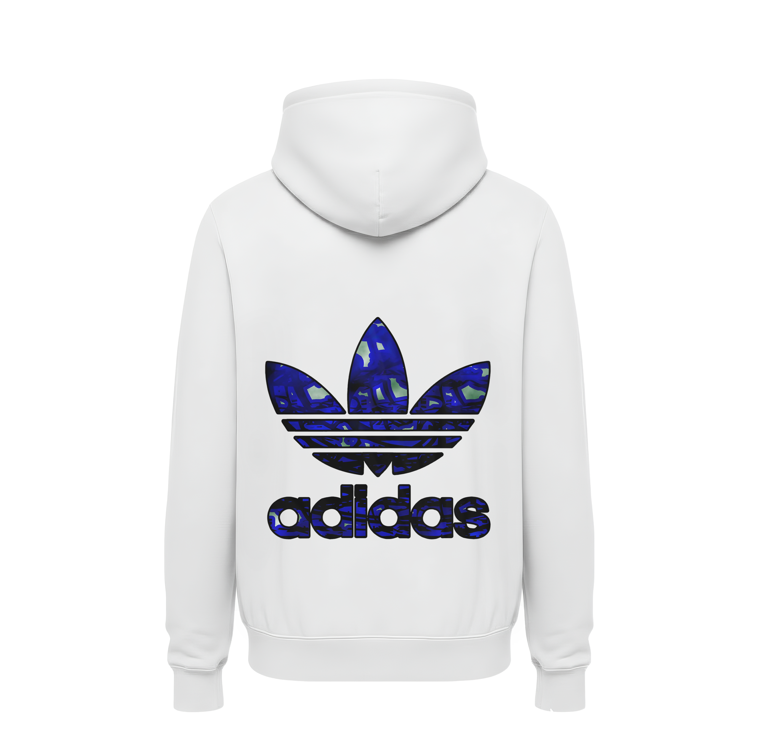 Monochrome White Canvas: The hoodie is crafted from a luxury white heavyweight cotton blend, allowing the vibrant blue abstract patterns to serve as the undeniable focal point.