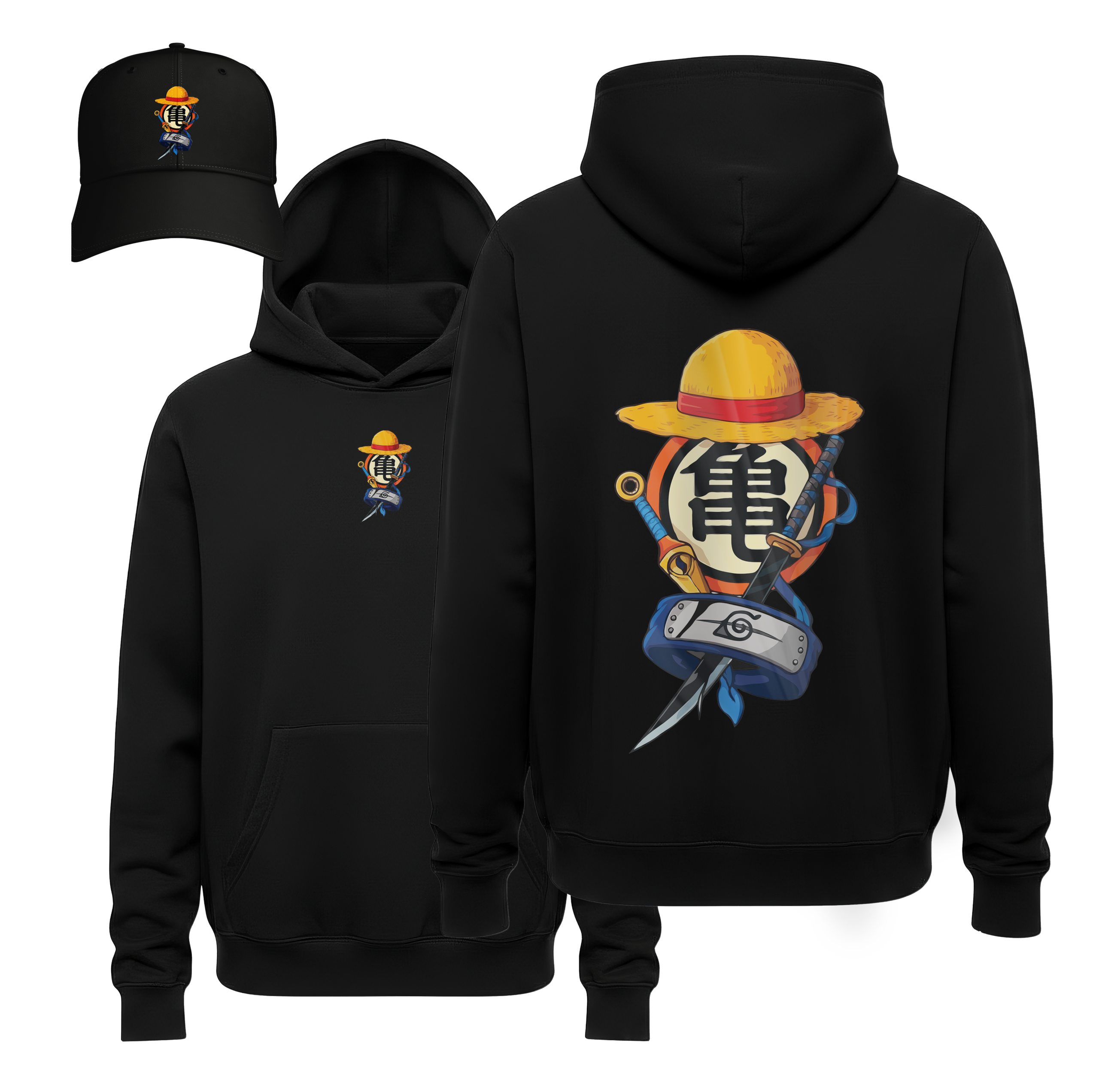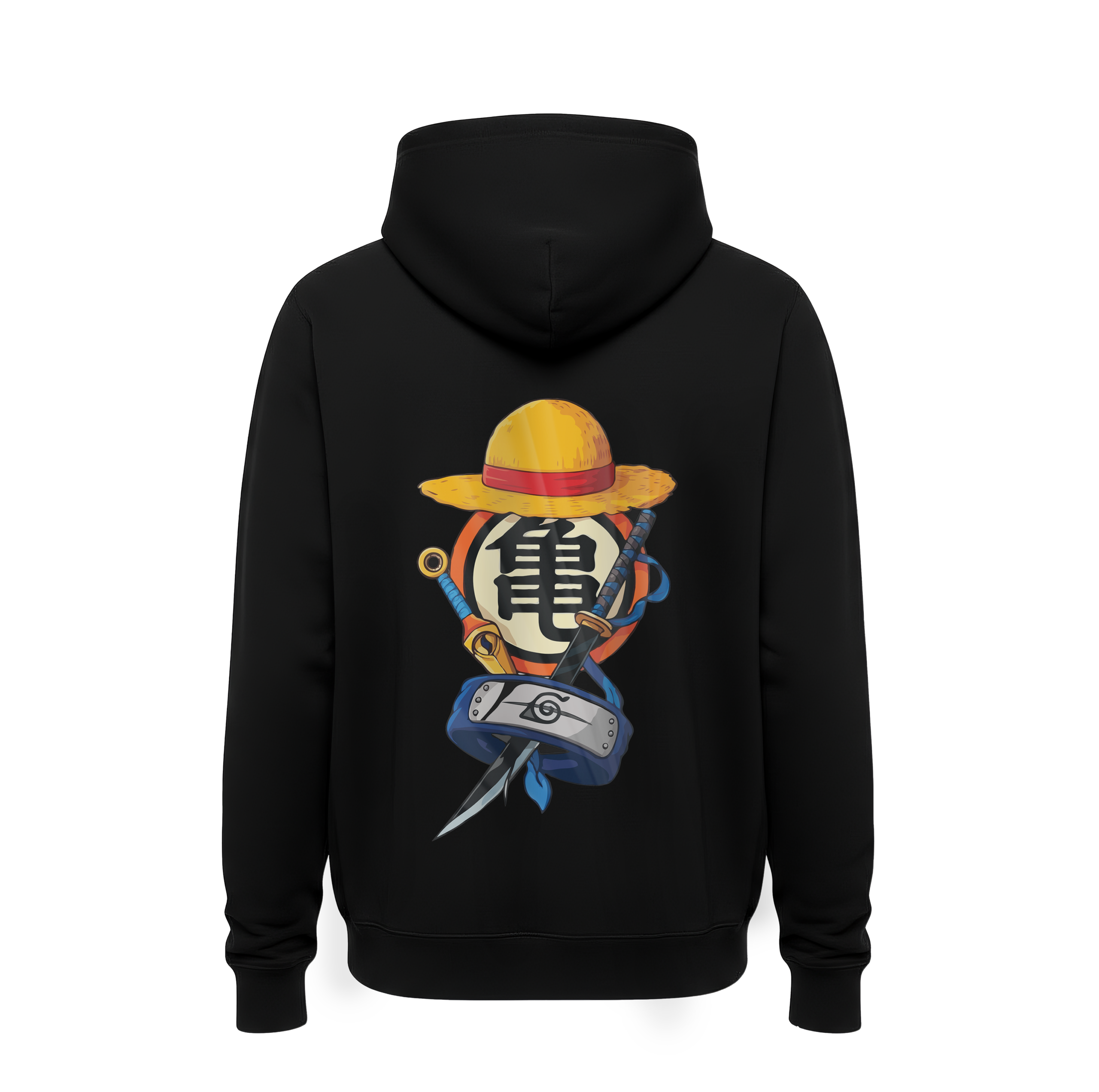 Weaponry of Heroes: Integrated into the central emblem are the iconic Zoro’s Katana and a Hidden Leaf Kunai, symbolizing the strength and discipline of the world’s greatest fighters.