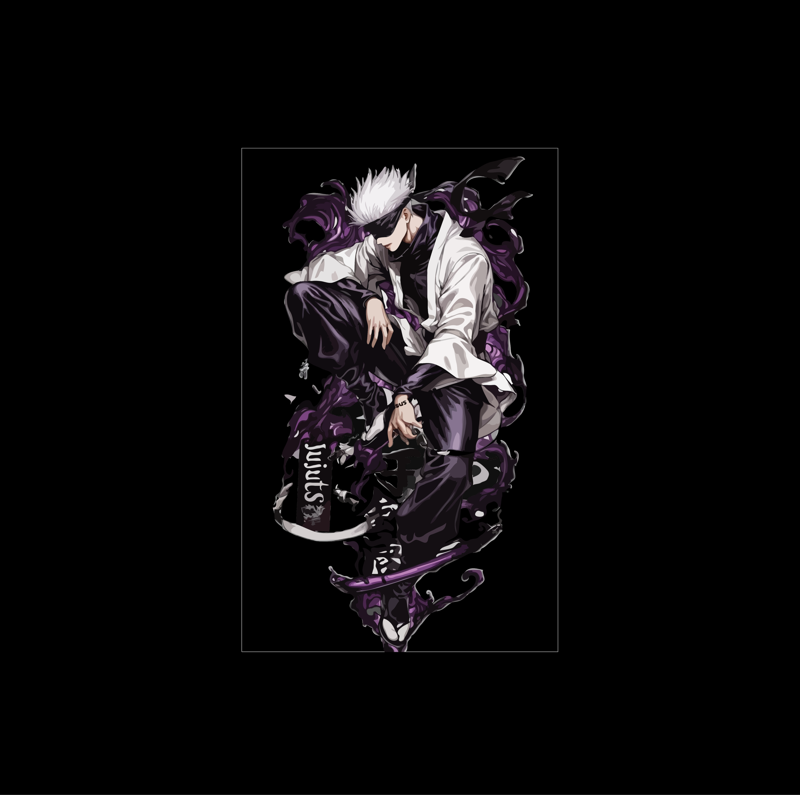 Monochrome & Violet Balance: The design utilizes a striking monochrome character palette for Gojo himself, allowing the vibrant, saturated purple energy to serve as the dominant visual force.