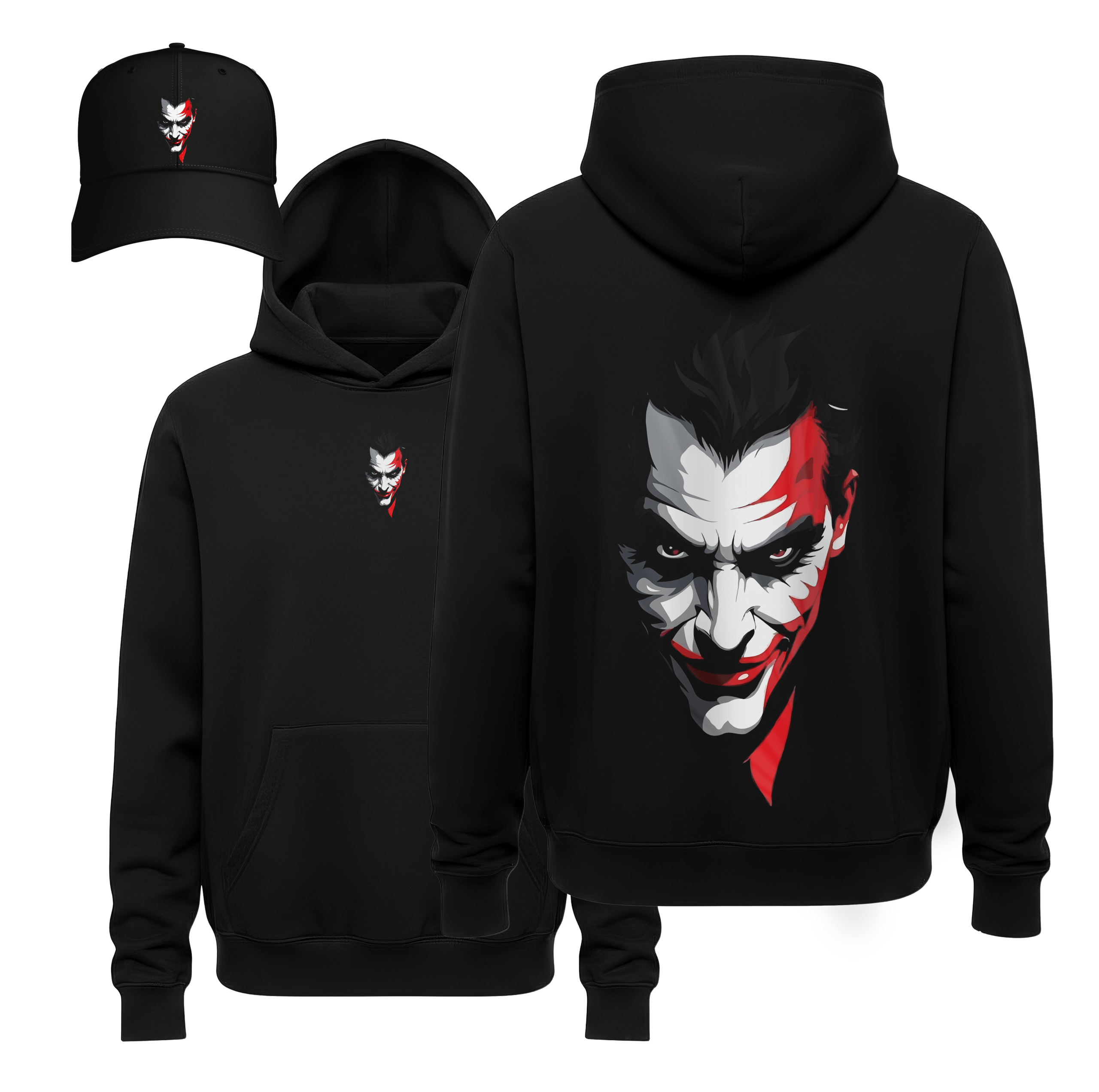• Coordinated Chaos Gear: Each set includes the premium black hoodie and a matching structured black cap featuring the signature “Joker Vision” branding for a unified, authoritative look.