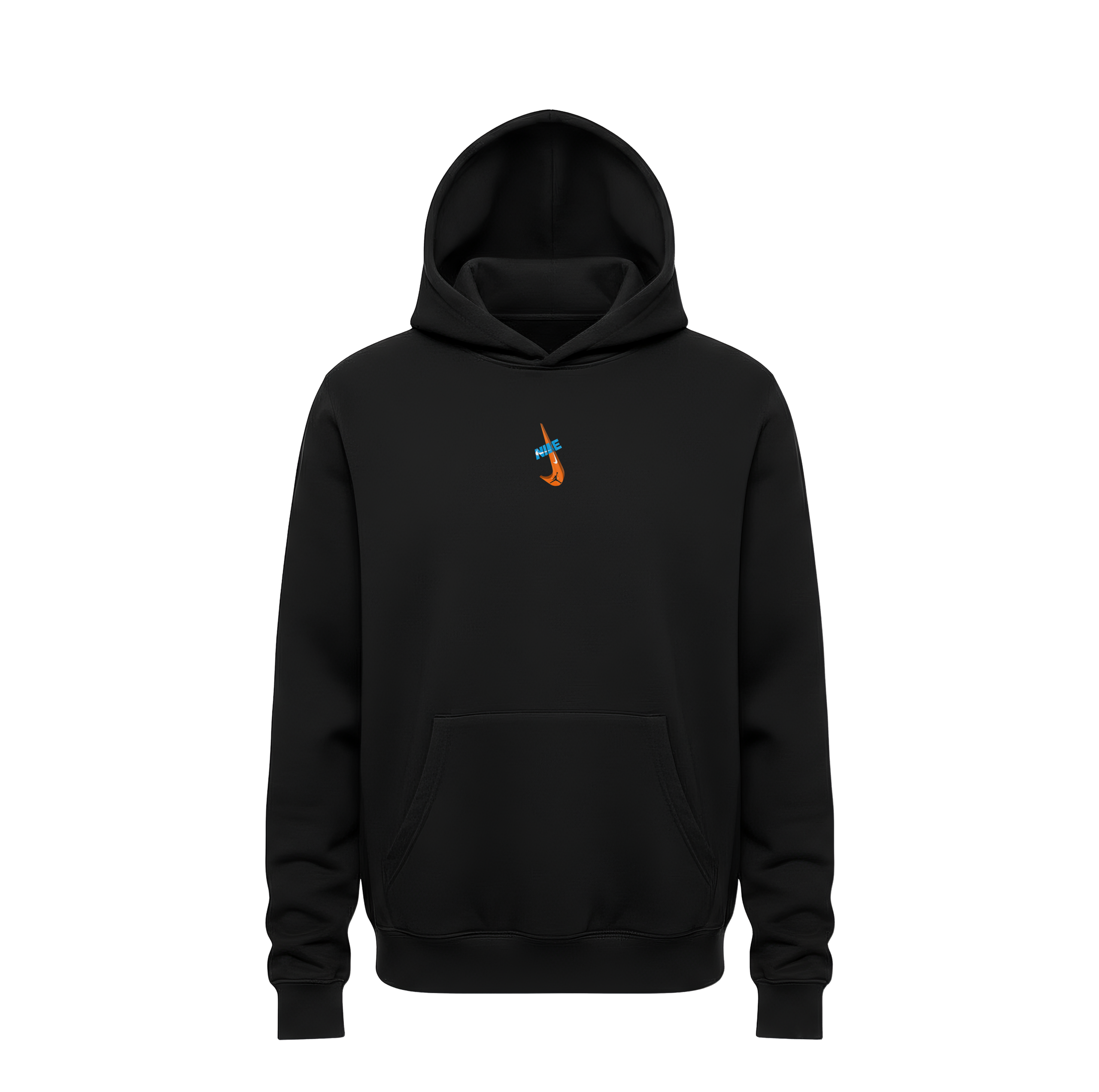 • Deep Black Canvas: The set is centered on a luxury black heavyweight cotton hoodie, providing a professional, high-contrast foundation that allows the electric blue typography and neon orange accents to vibrate with intensity.