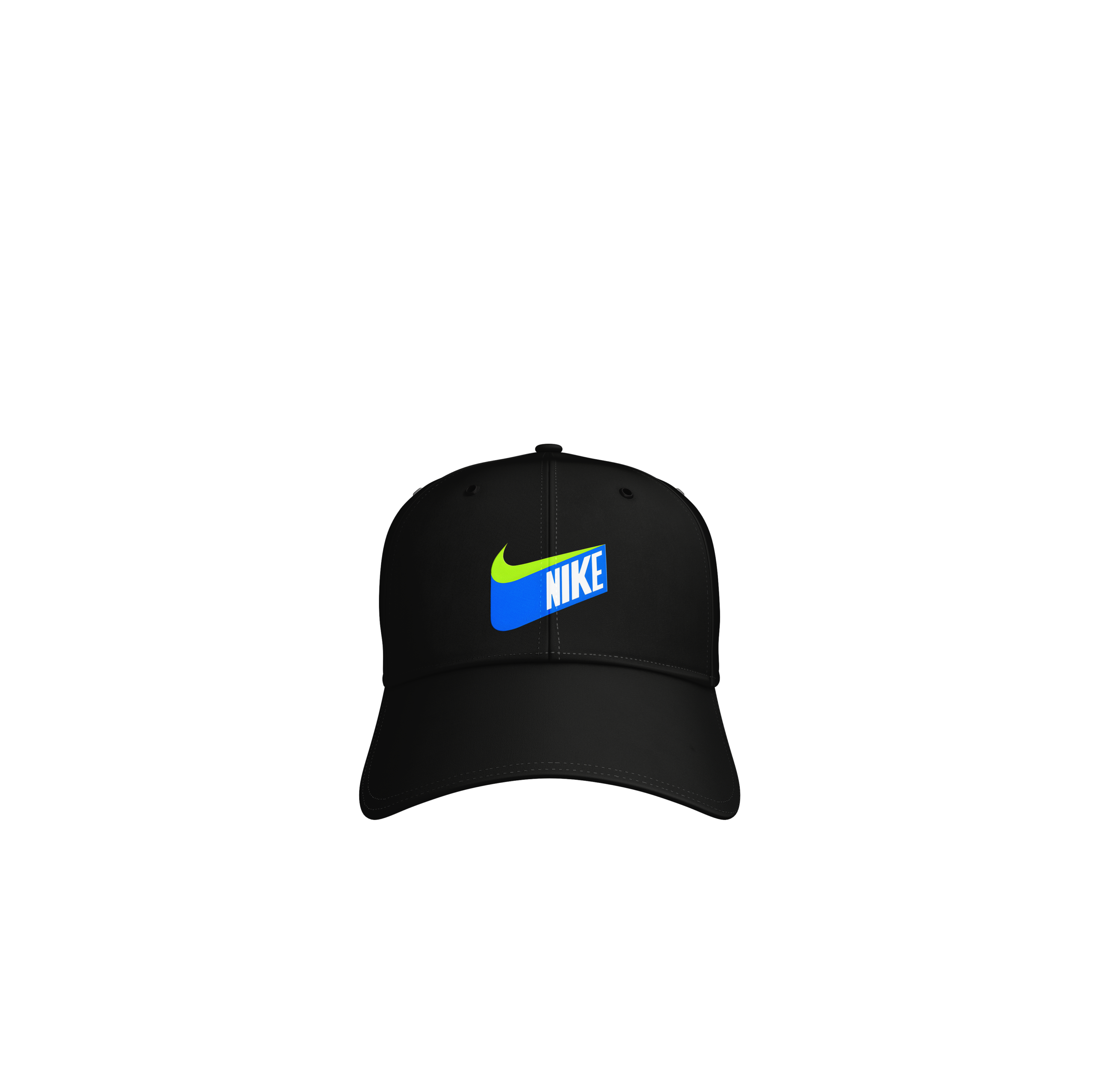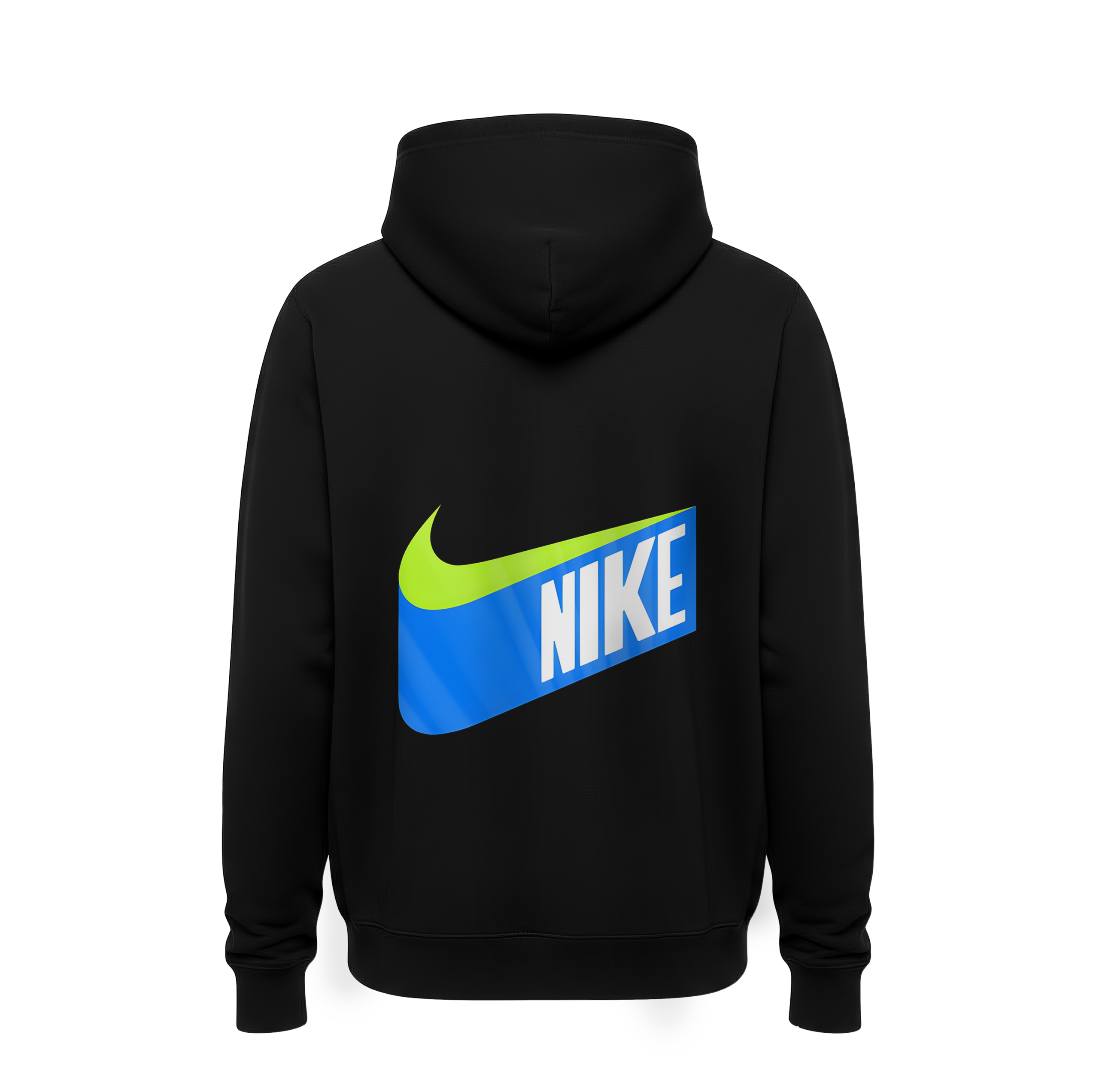 Geometric Color-Block Artistry: The back features a large-scale Nike Swoosh reimagined with a two-tone “swatch” effect. The top half of the logo is rendered in a vibrant electric lime, while the bottom section transitions into a deep, saturated azure blue.