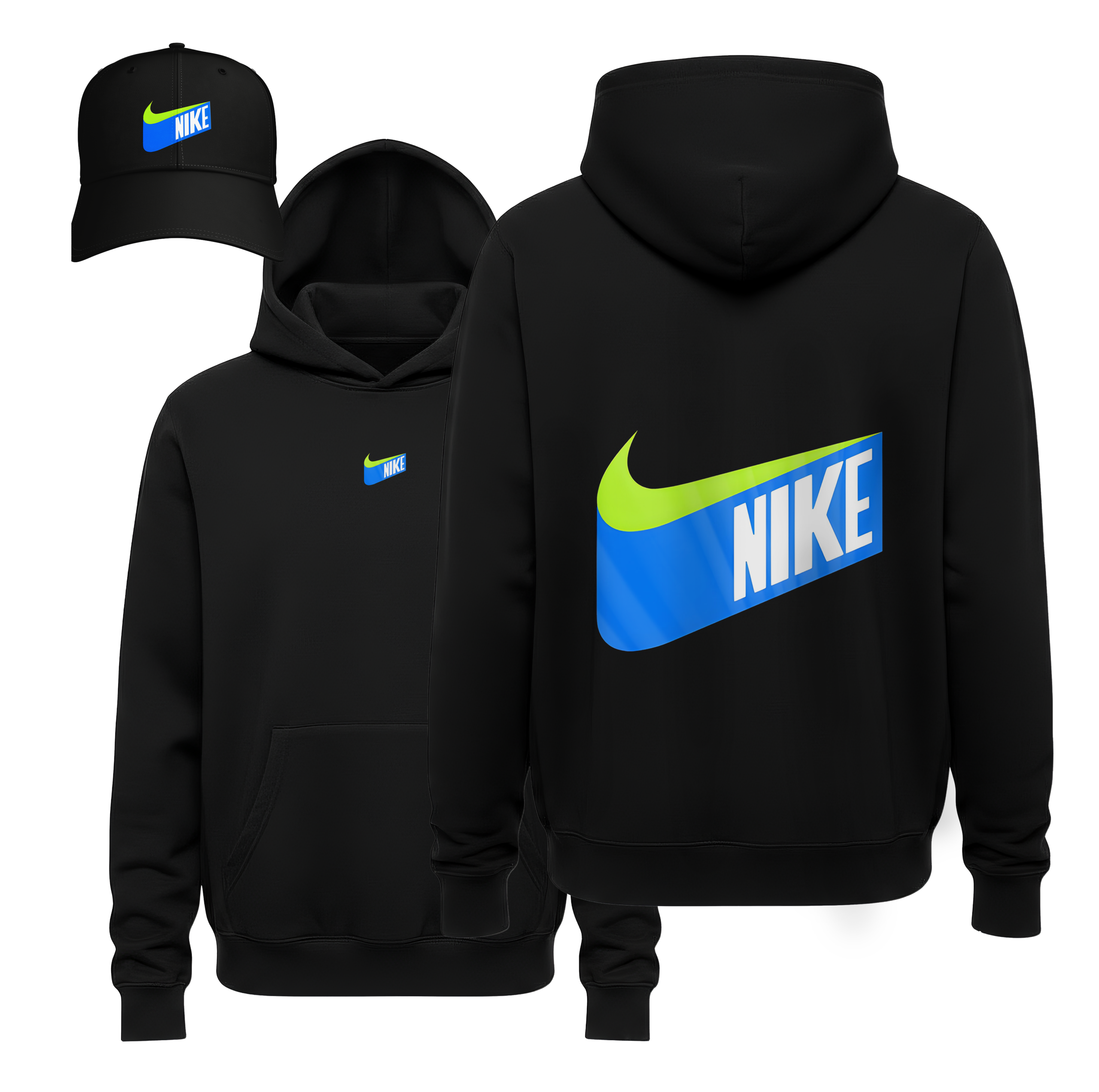Deep Black Canvas: The bundle is centered on a luxury black heavyweight cotton hoodie, providing a professional, high-contrast foundation that allows the lime and blue palette to visually vibrate.
