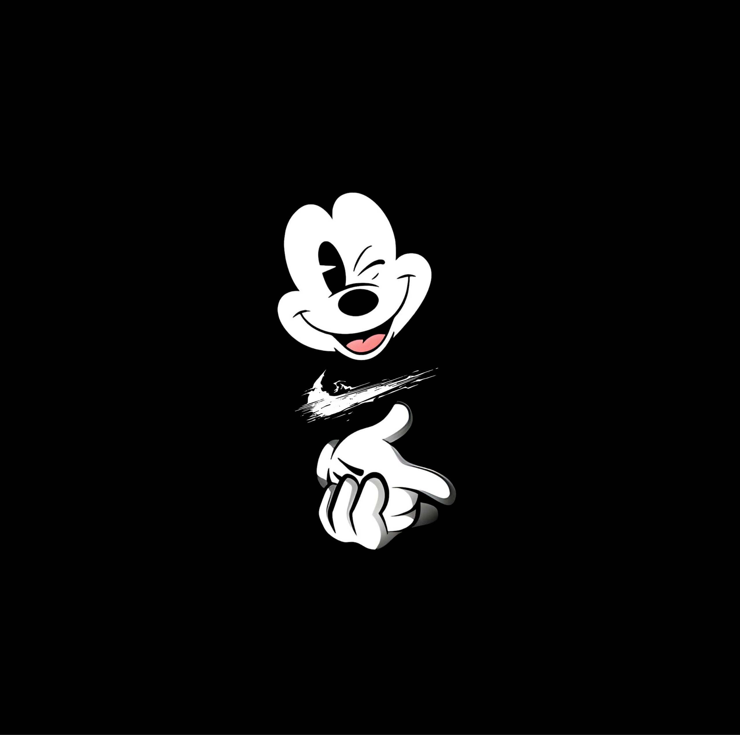 • Kinetic Swoosh Integration: Floating between Mickey’s face and hand is a sharp, white Nike Swoosh rendered with a “shattered” or motion-blurred effect, adding a layer of high-speed energy to the composition.