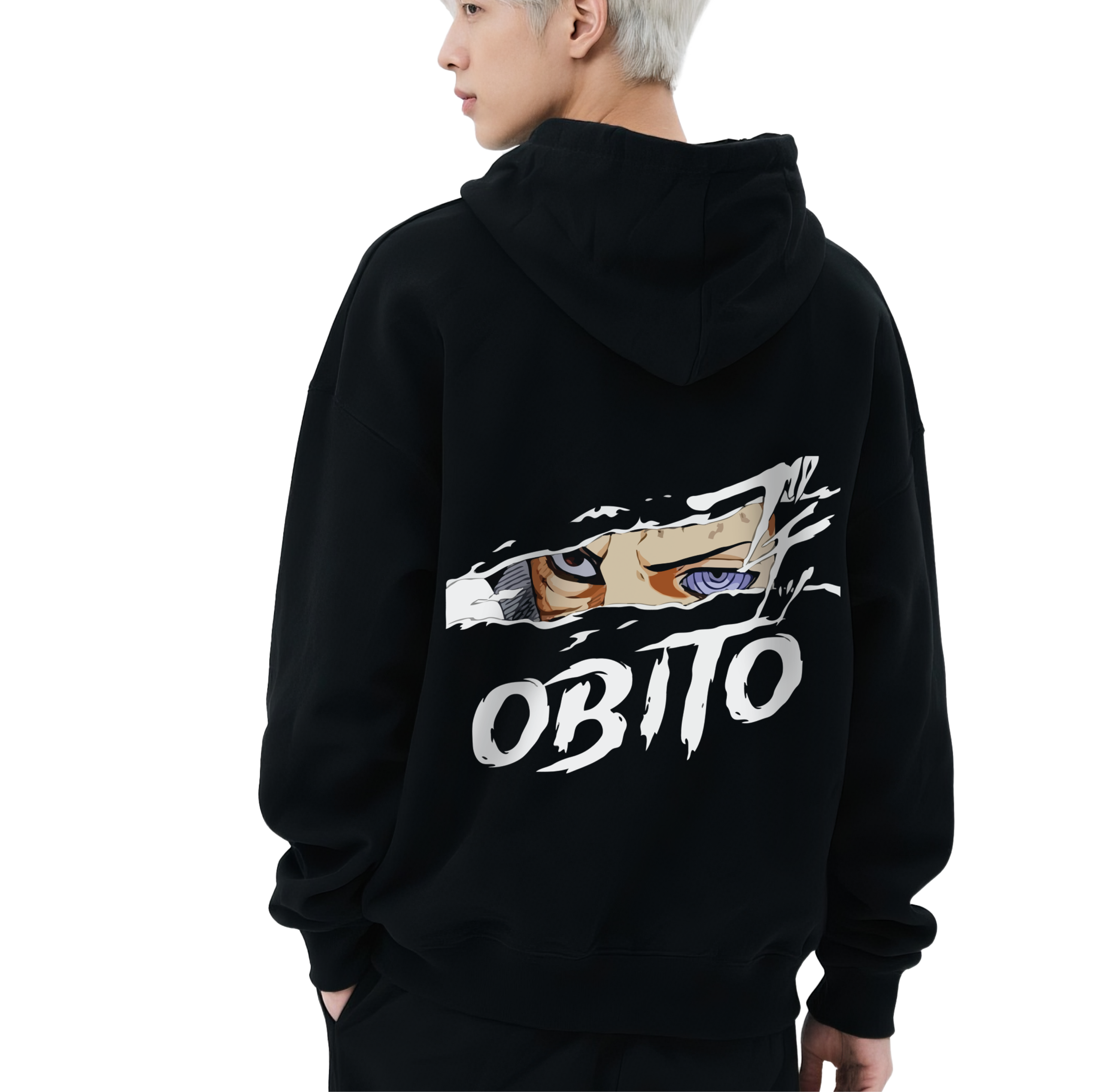 • Shattered Eye Artistry: The back features a high-definition, panoramic “eye-crop” of Obito Uchiha. The design focuses on his dual visual mastery, showcasing his unique Mangekyou Sharingan and the legendary Rinnegan peer through a jagged, “torn-reality” frame.