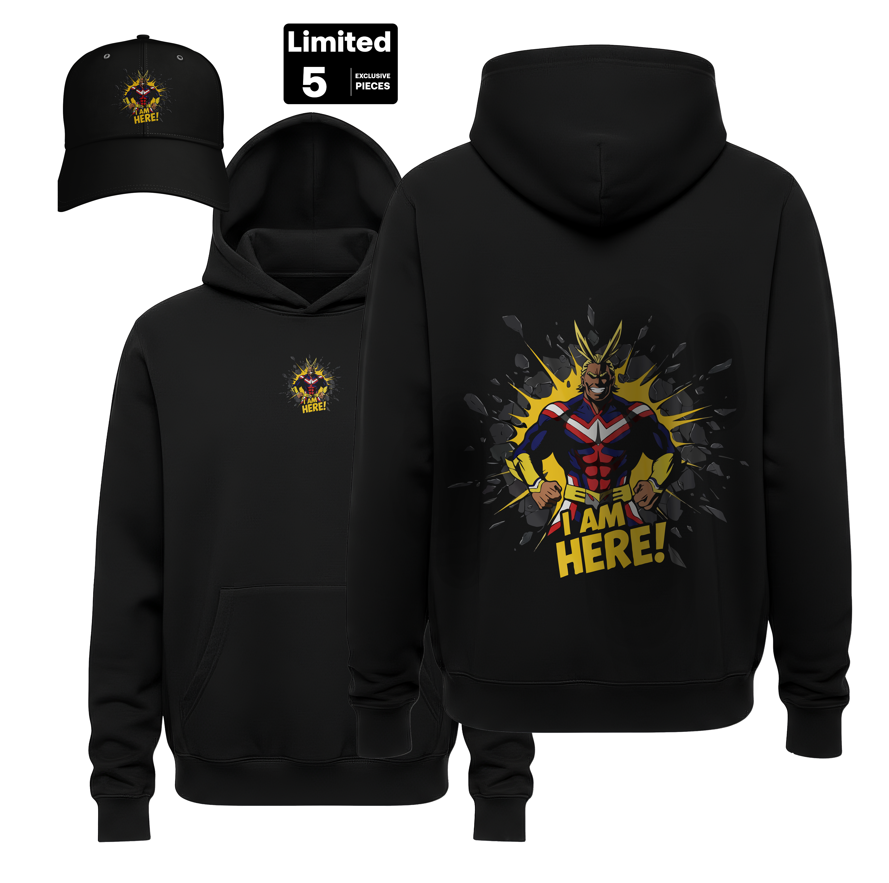 My Hero Academia bundle featuring the Number One Hero in his most iconic, wall-shattering pose. This “Plus Ultra” streetwear duo captures the unwavering confidence of All Might, serving as a beacon of hope and power for every aspiring hero.