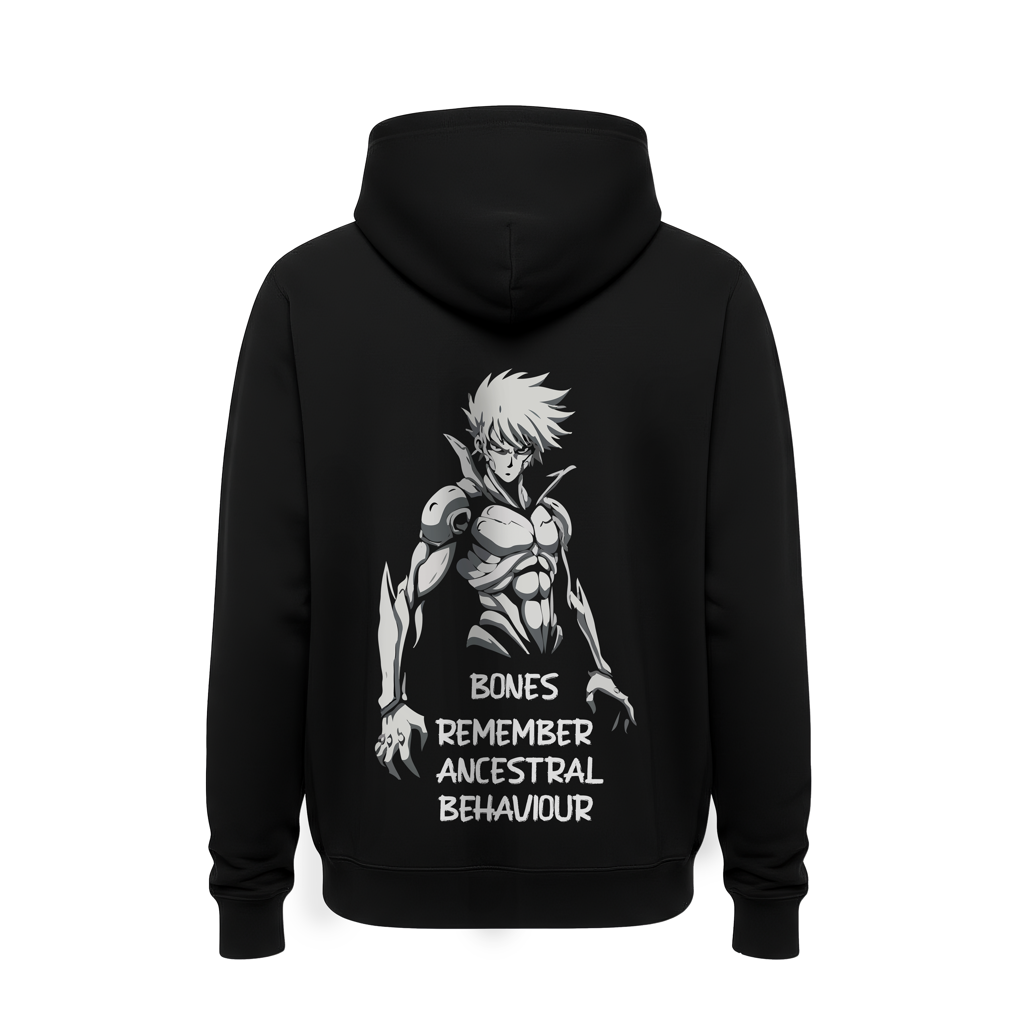 • Primal Guardian Artistry: The back features a high-definition, monochrome illustration of a powerful, cyber-enhanced warrior figure, representing the union of ancient instinct and modern evolution.