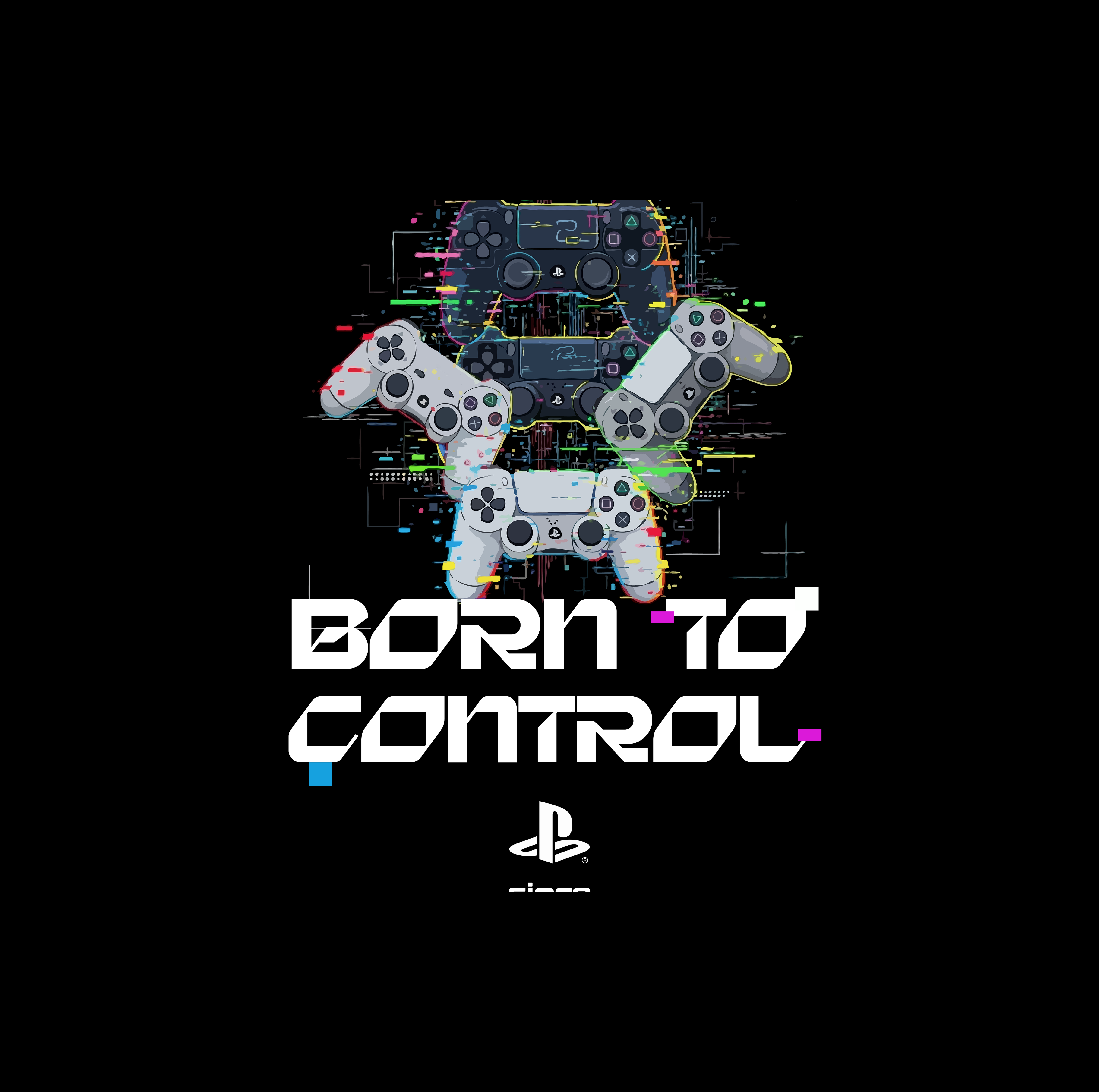 Born to Control PlayStation bundle. This design celebrates the evolution of play, blending iconic hardware with a modern “glitch-art” aesthetic for the ultimate console enthusiast.