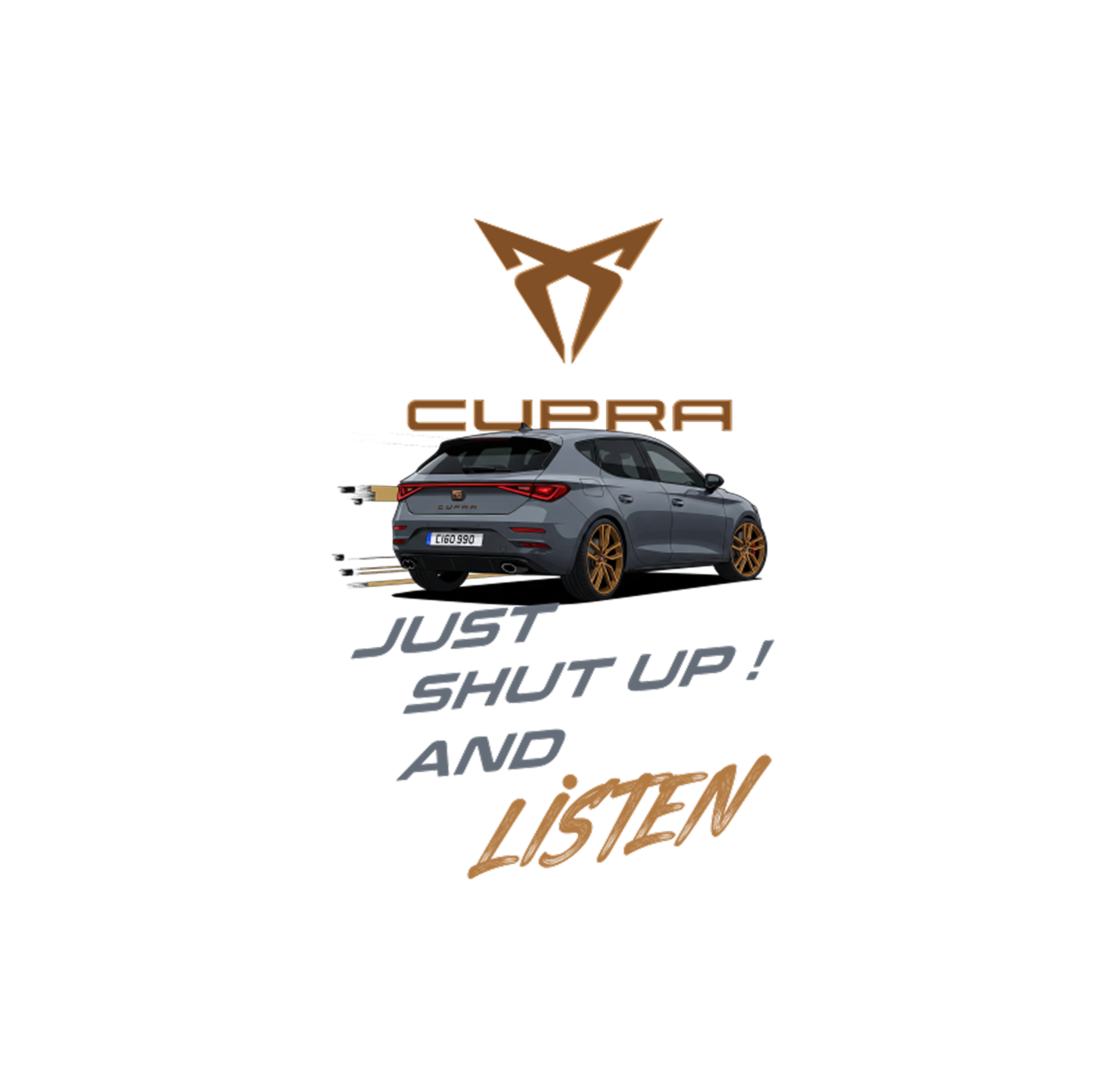 Aggressive Cupra Leon bundle. Featuring the unmistakable copper accents and sharp rear profile of the Leon, this “Just Shut Up and Listen” set is designed for those who value raw performance and bold, uncompromising design.