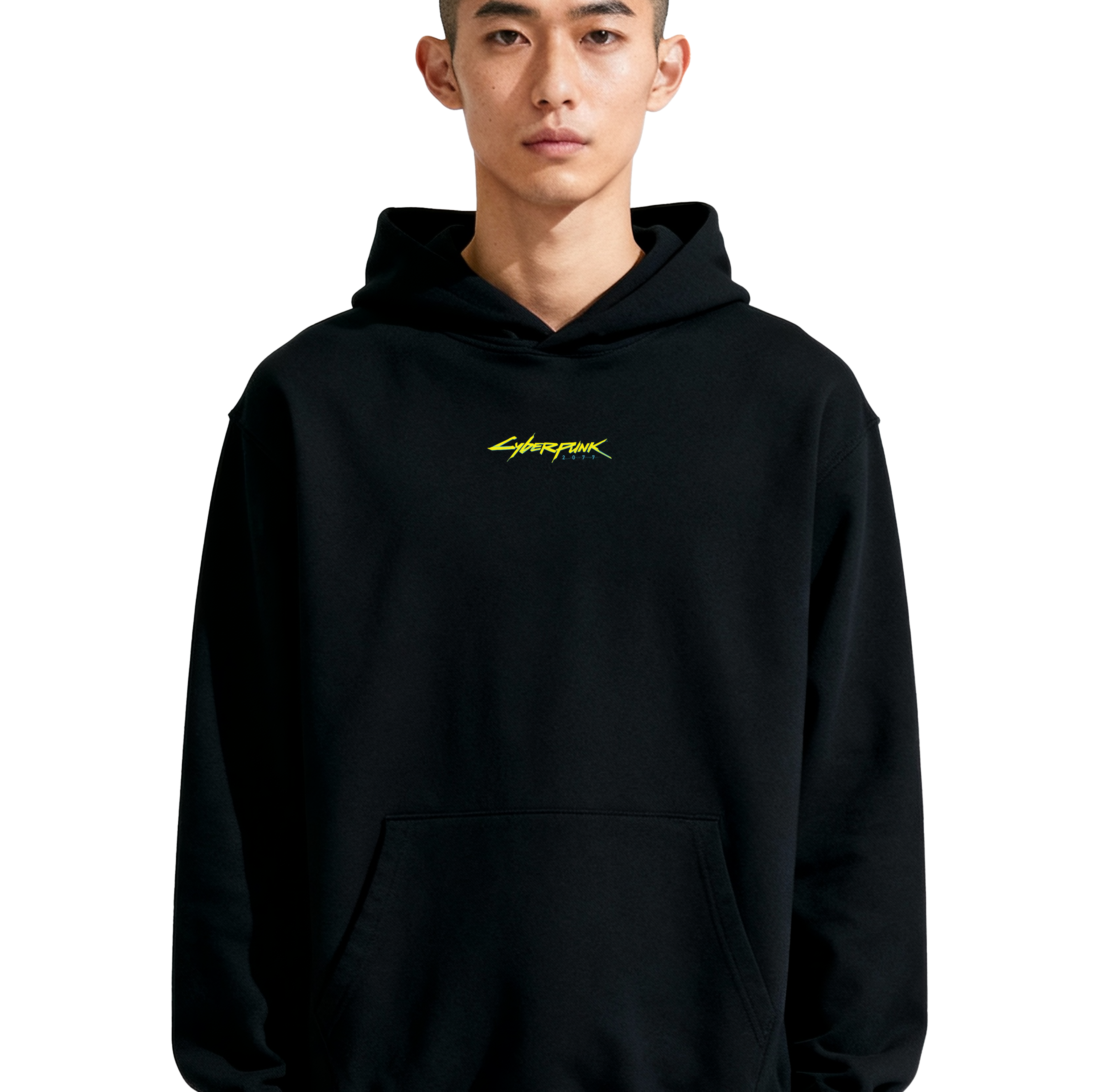 Official Franchise Branding: The vibrant yellow Cyberpunk 2077 logo provides a high-contrast neon pop against the deep black fabric on both the back and chest.