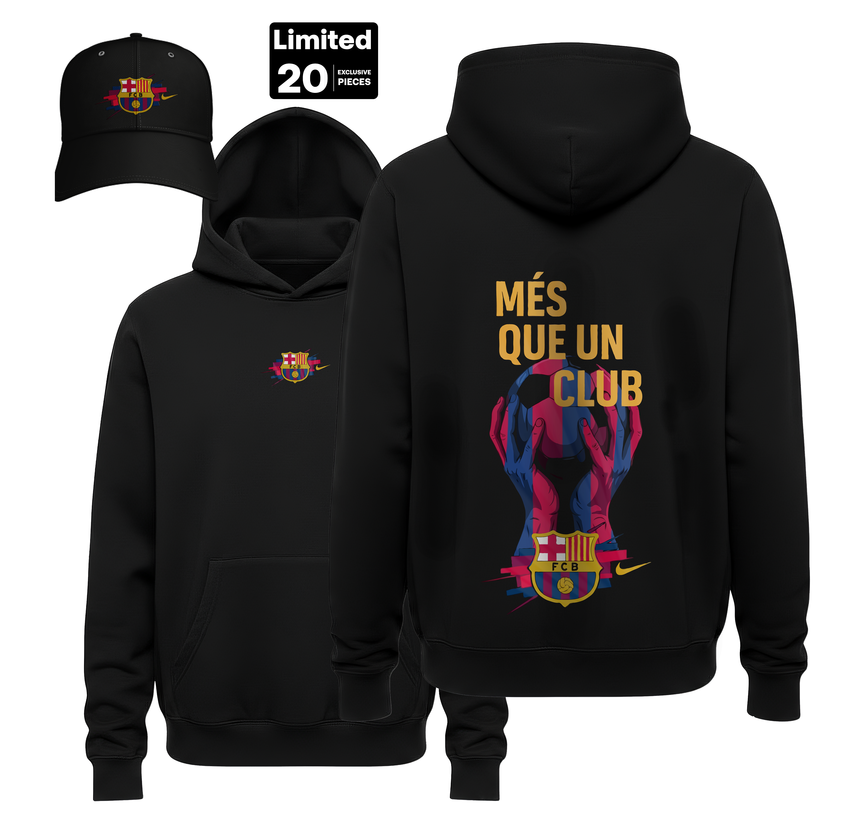 • Unified Supporter Gear: The bundle includes a high-quality hoodie with a detailed chest crest and a matching structured cap, both featuring the FC Barcelona shield and the gold Nike swoosh.