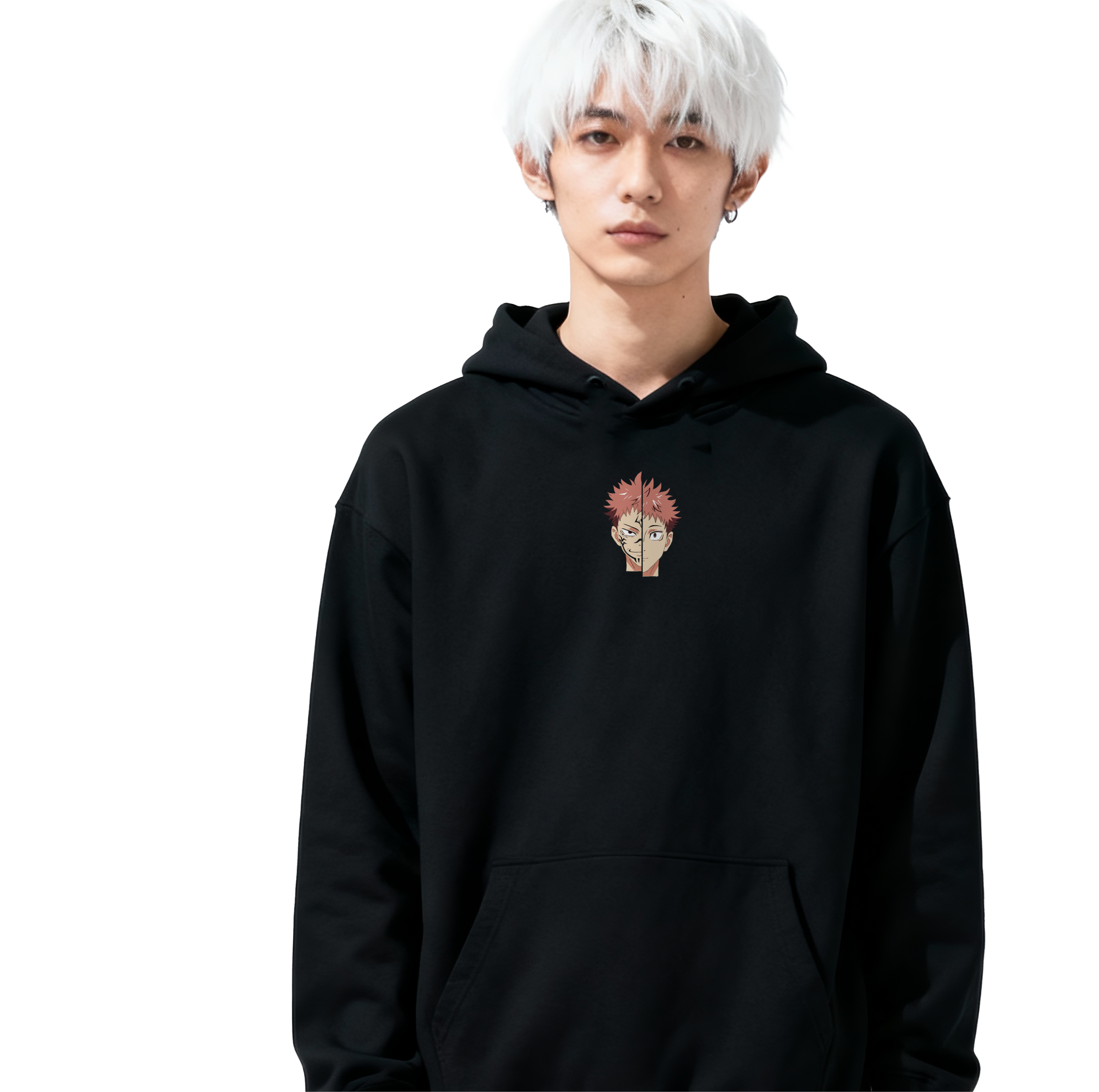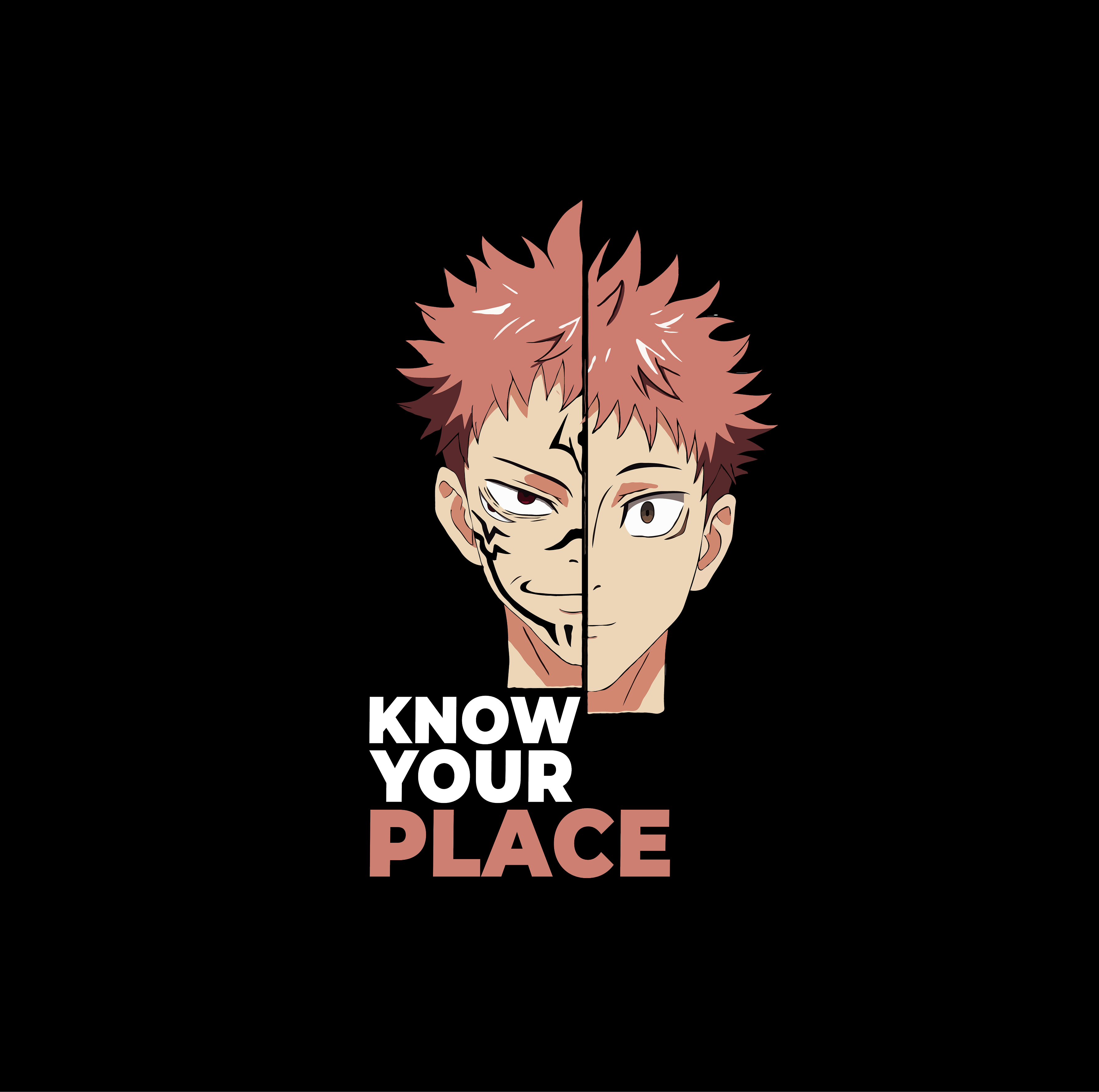 Striking split-face design that captures the intense struggle between Yuji Itadori and Ryomen Sukuna.