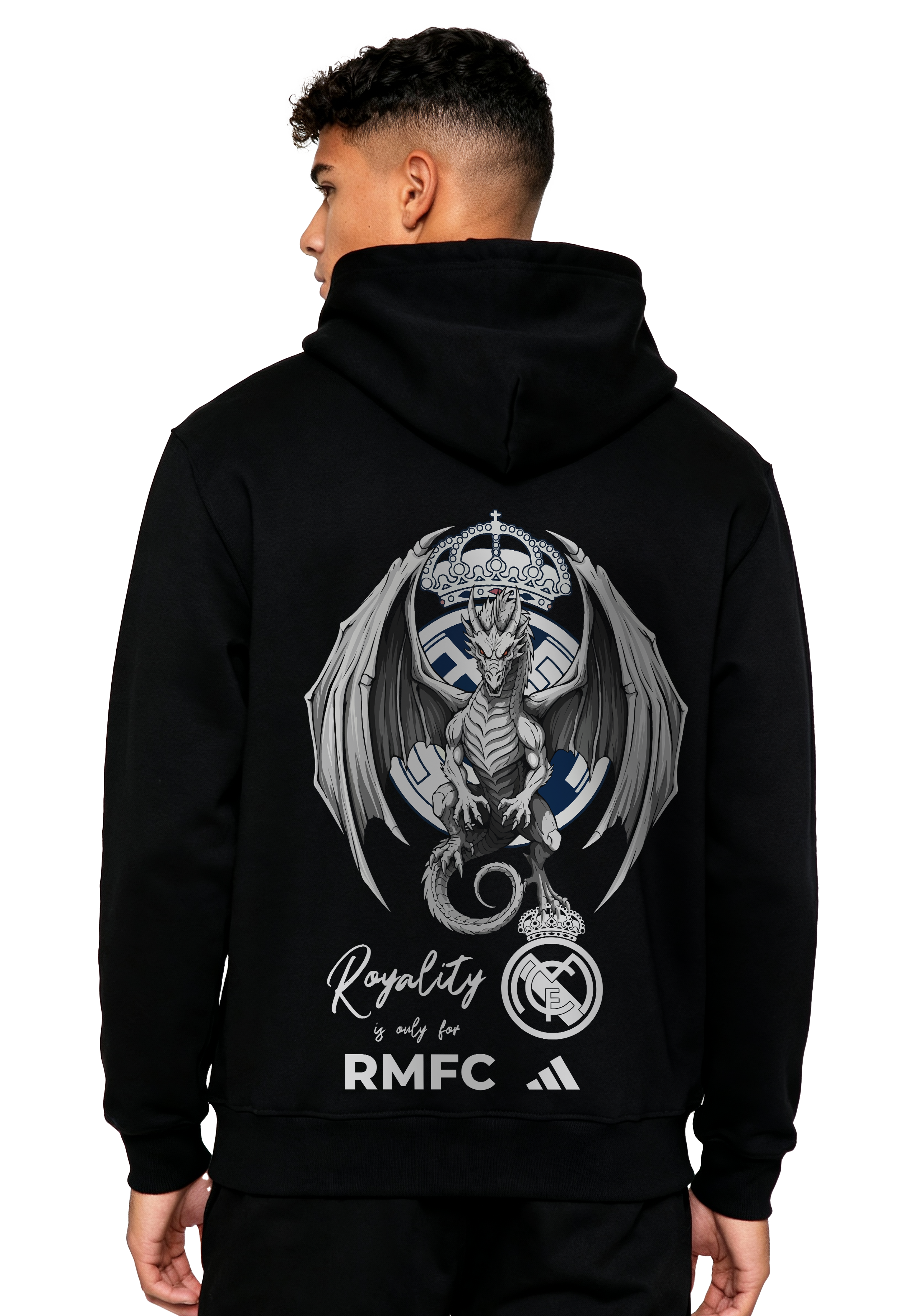 • Guardian Dragon Graphic: The back features a high-definition silver dragon with outspread wings, fiercely guarding the iconic Real Madrid crest and royal crown.