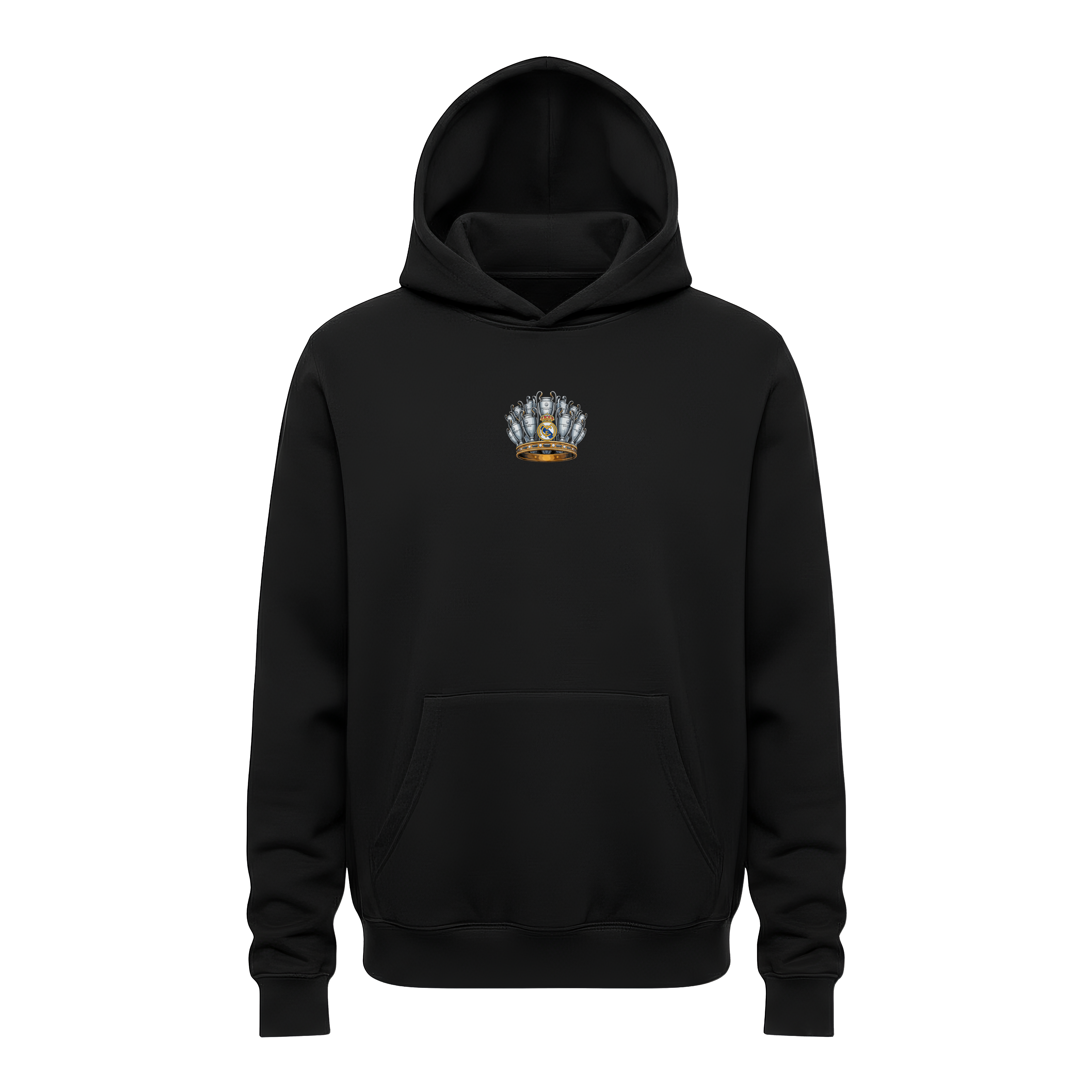 Elite Branding: The front of the hoodie keeps a professional and clean look with a miniature version of the Trophy Crown centered on the chest.