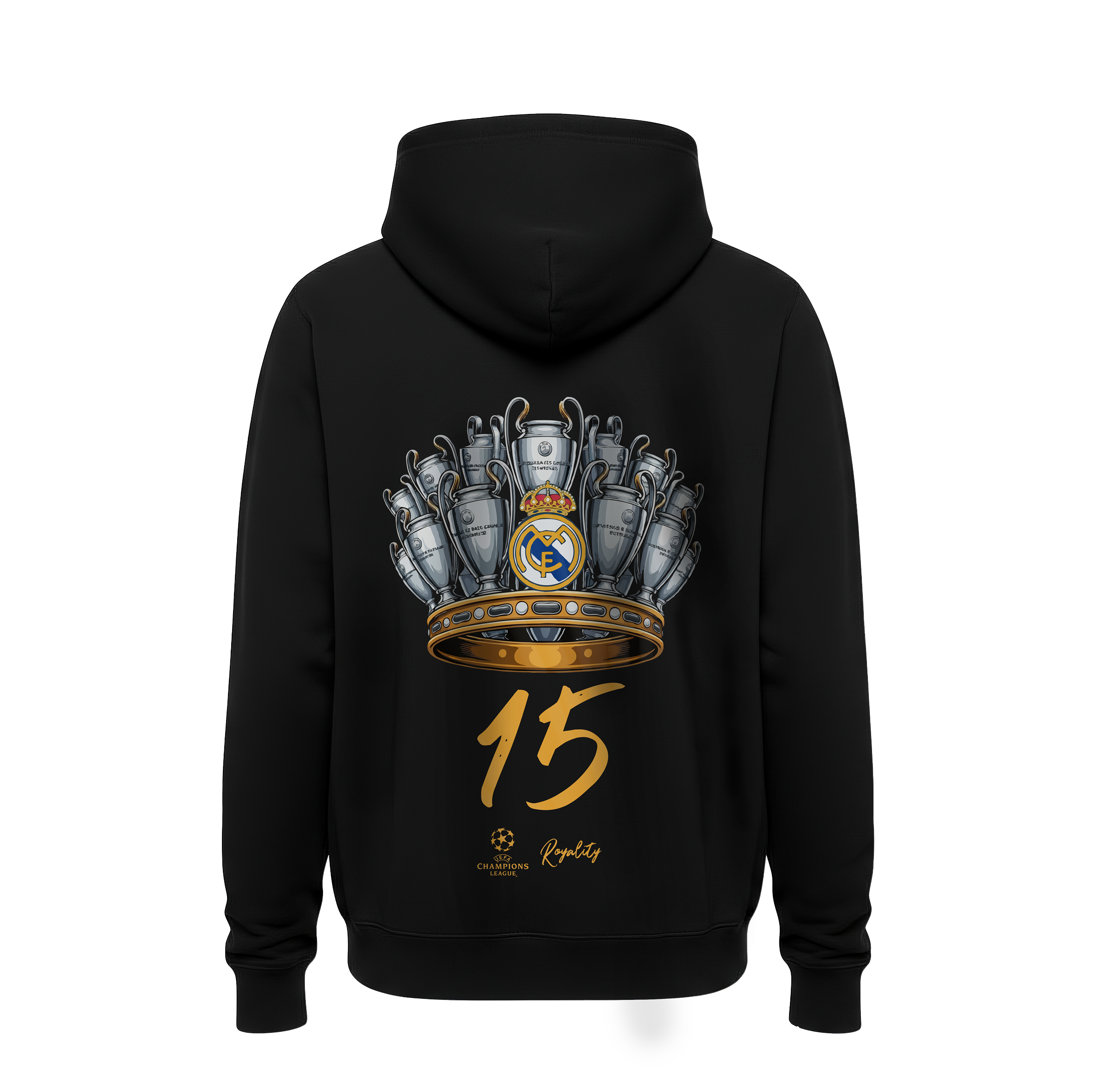 Real Madrid Royalty 15 bundle. This design immortalizes the historic 15th Champions League title with a majestic, high-contrast aesthetic fit for the most successful club in football history.