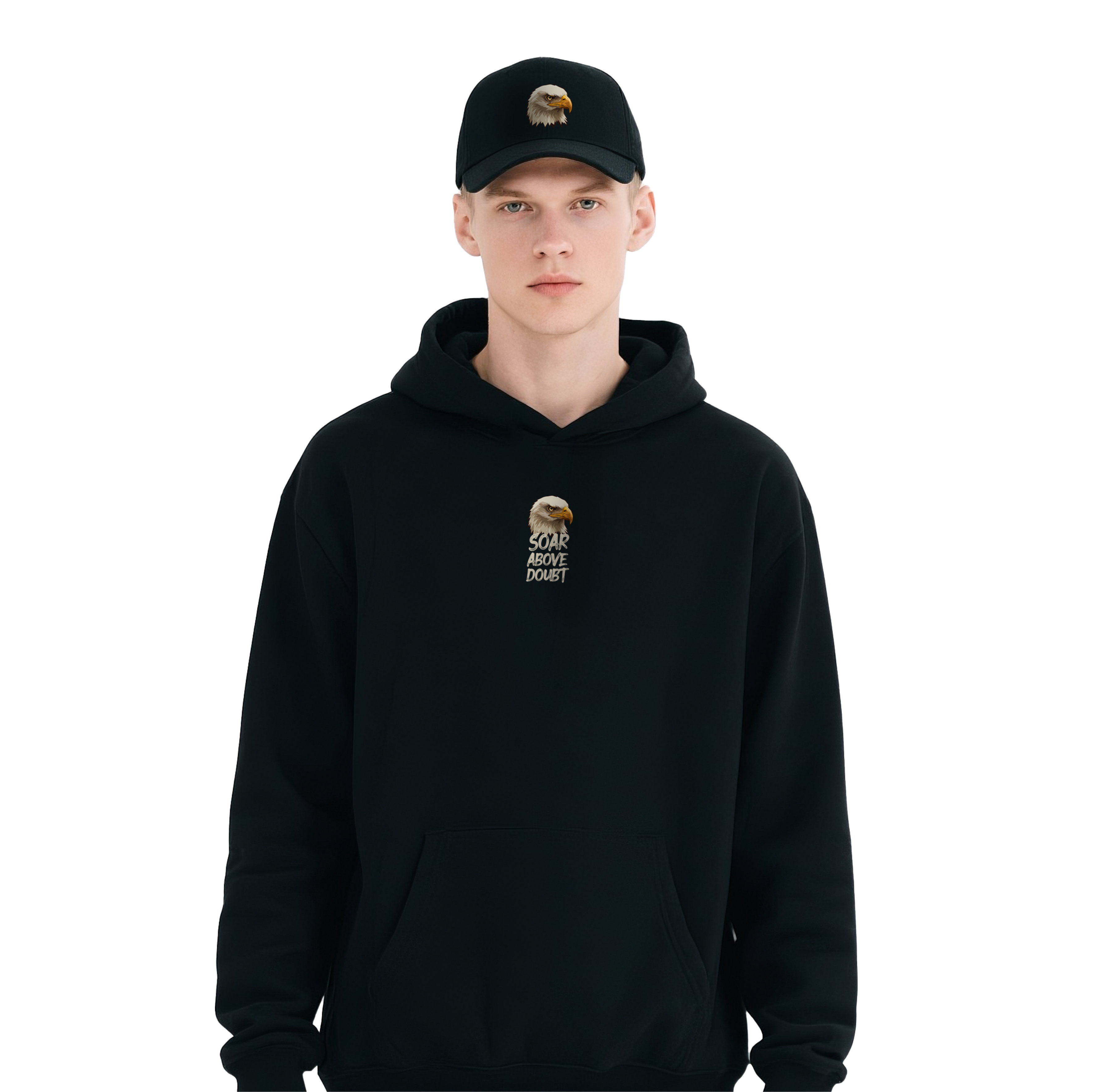 Coordinated Headwear: Each bundle includes a luxury heavyweight black hoodie and a matching structured cap, both featuring the iconic eagle insignia for a unified, authoritative aesthetic.