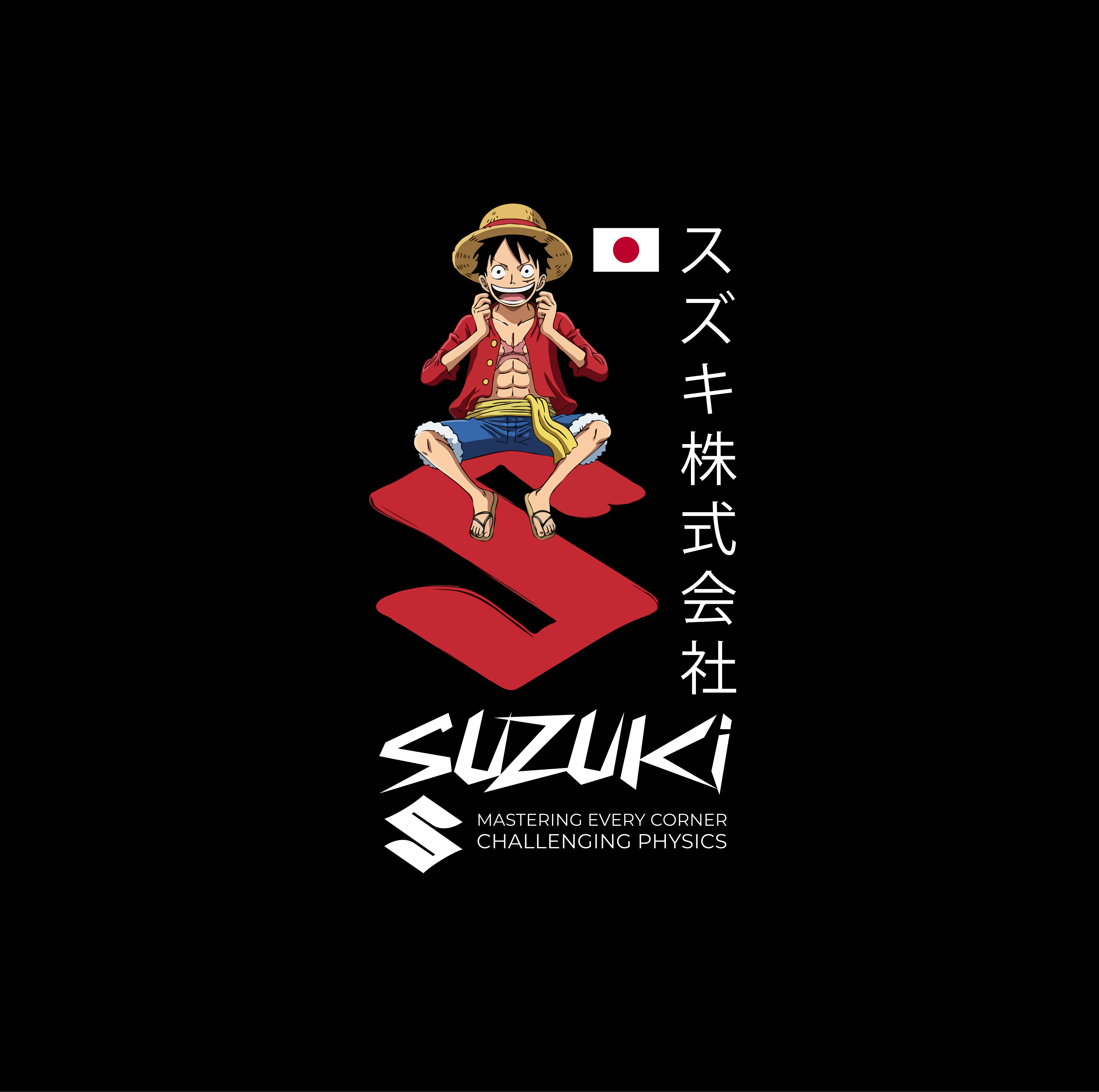 • Authentic Japanese Styling: The design features vertical Kanji typography and the Japanese flag, paying homage to the heritage of both the Suzuki Motor Corporation and the world of One Piece.