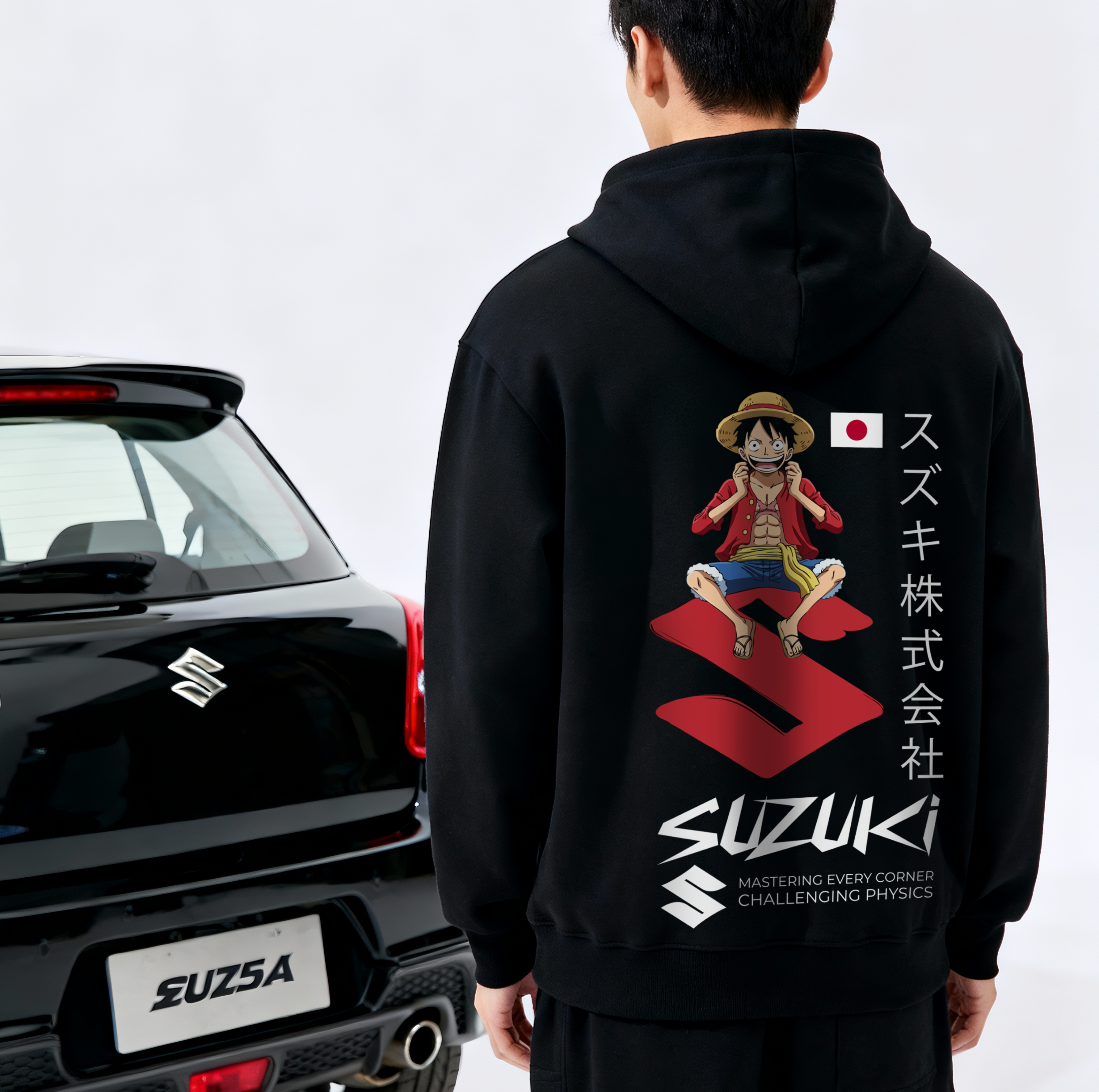 • Premium DTF Character Art: Our advanced Direct to Film (DTF) technology brings Luffy to life in vivid color, seated atop the iconic Suzuki “S” emblem with surgical precision and a high-contrast finish.