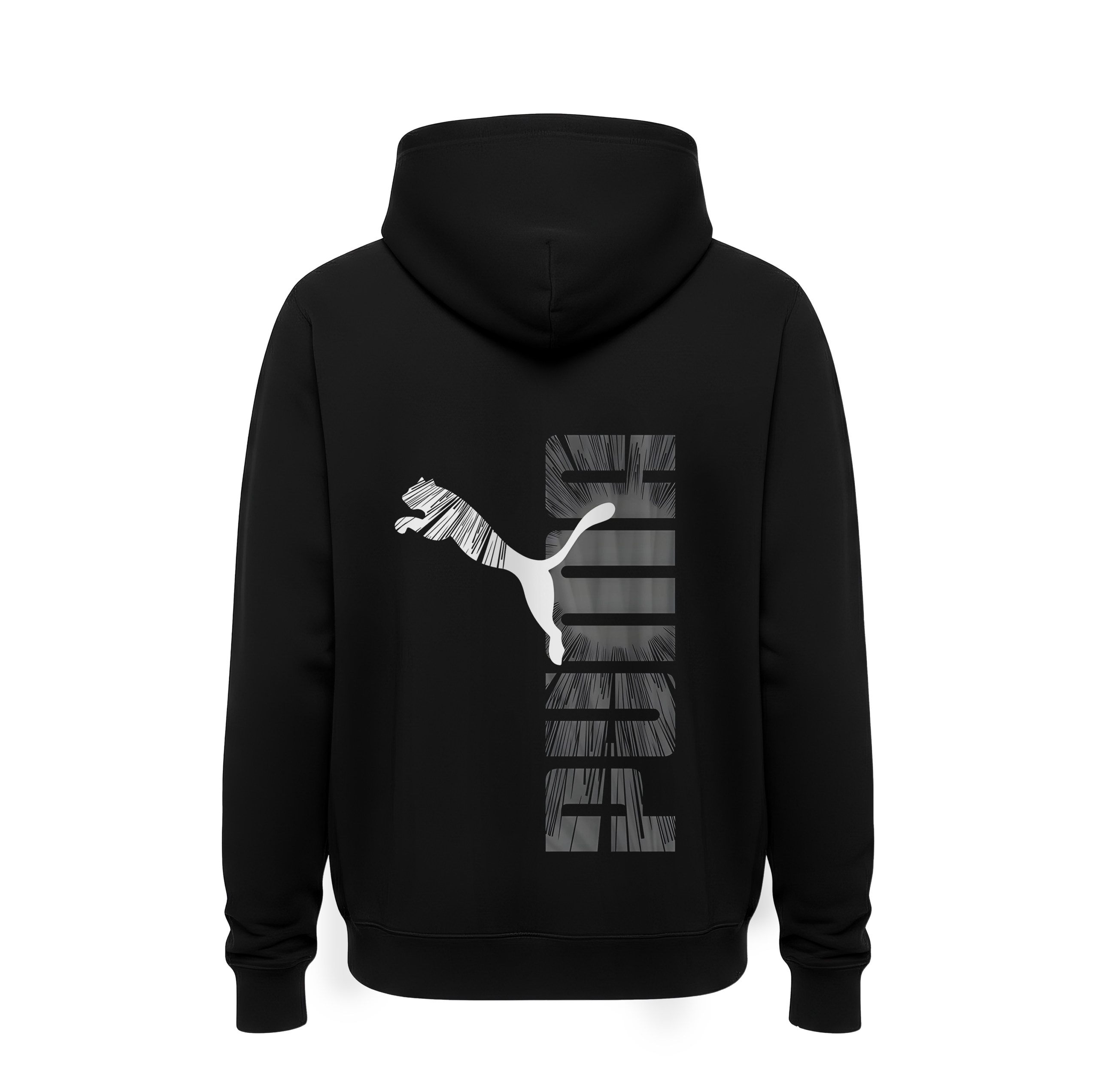 Industrial Blueprint Artistry: The back features the classic vertical “PUMA” wordmark reimagined with a heavy, metallic texture. The letters are filled with slate-grey “hydraulic” striations that simulate the look of brushed steel or heavy-duty machinery.