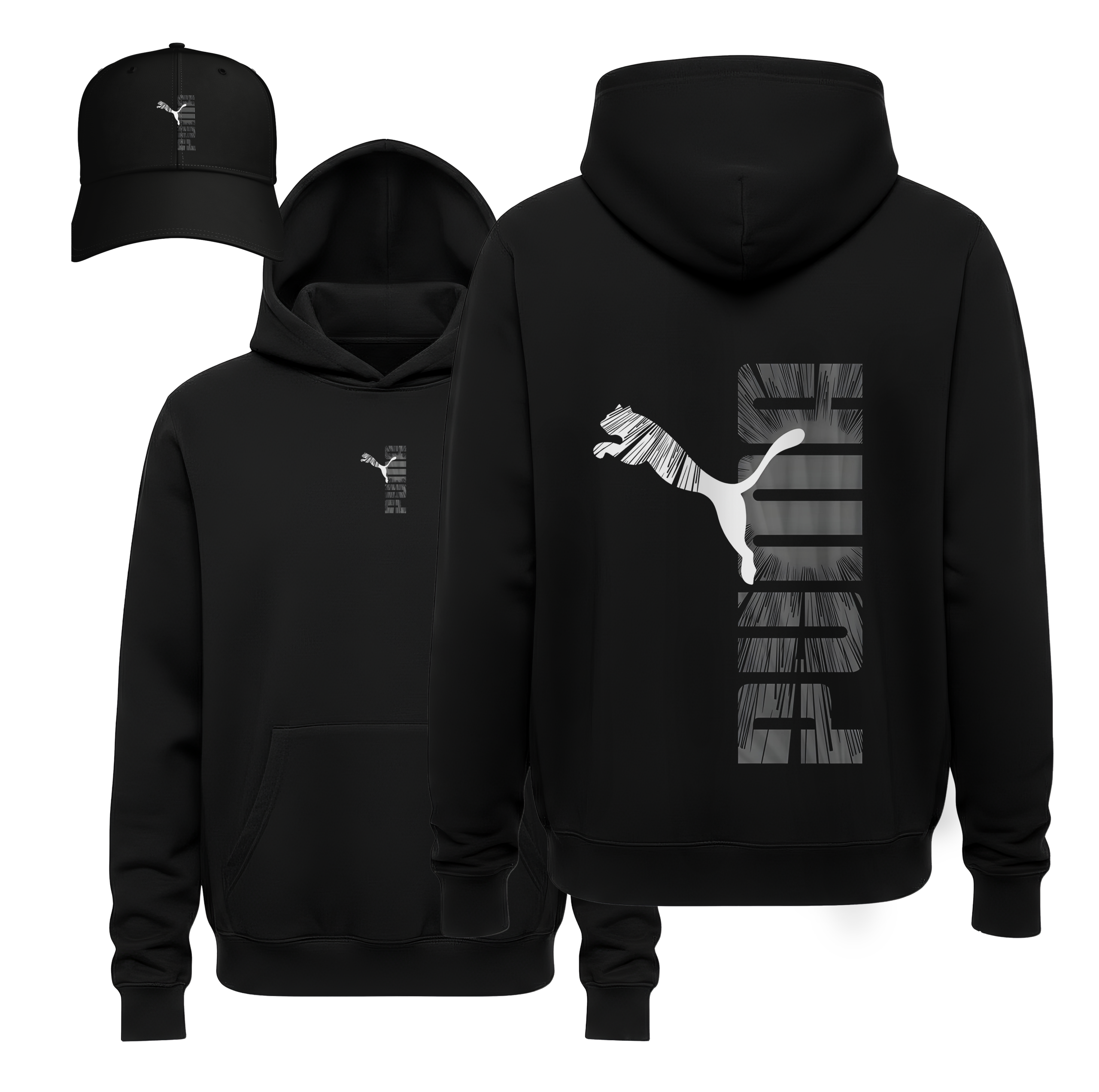 Deep Black Canvas: The bundle is centered on a luxury black heavyweight cotton hoodie, providing a professional, high-contrast foundation that allows the grey industrial textures and white icons to stand out with authority.