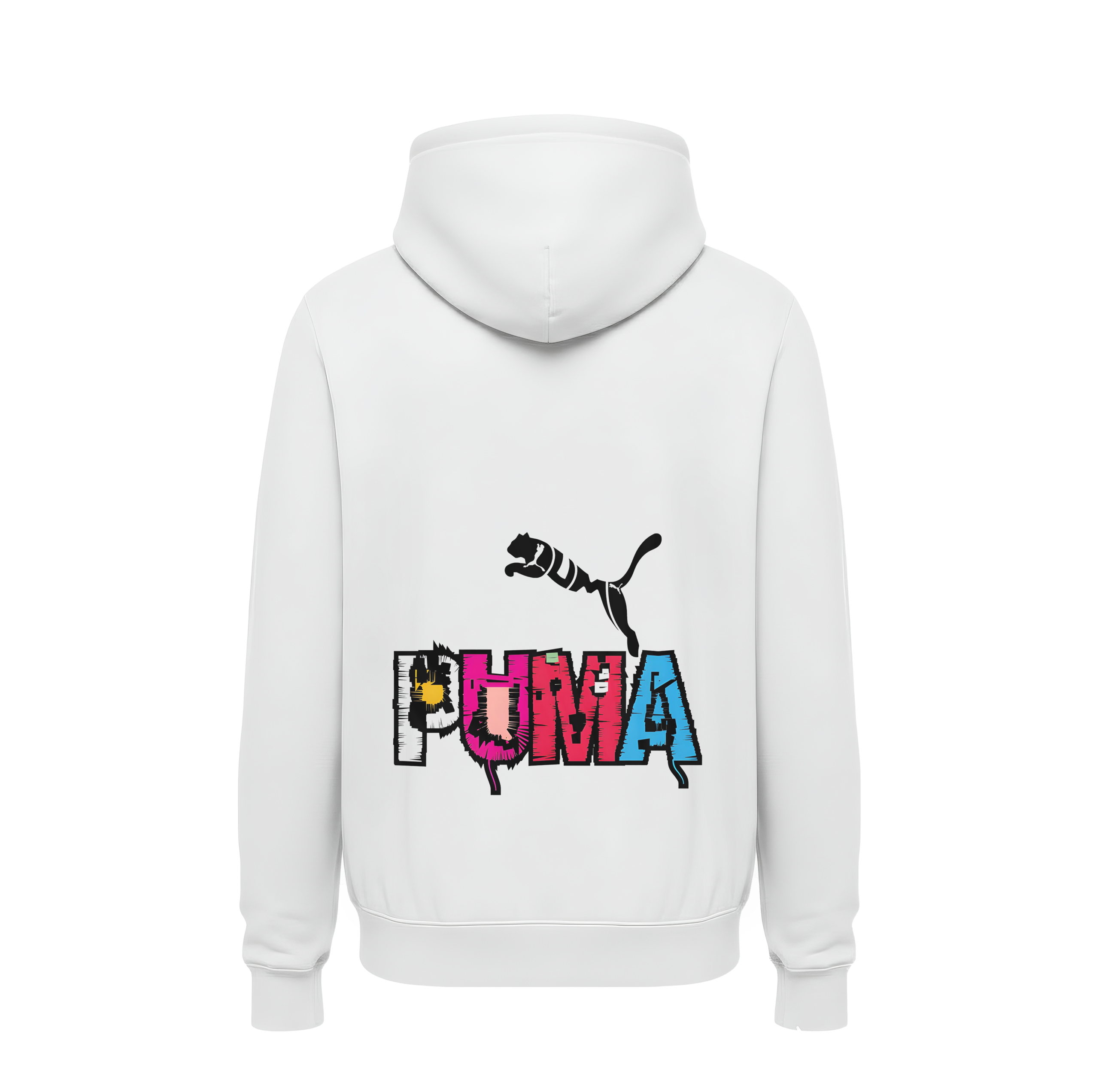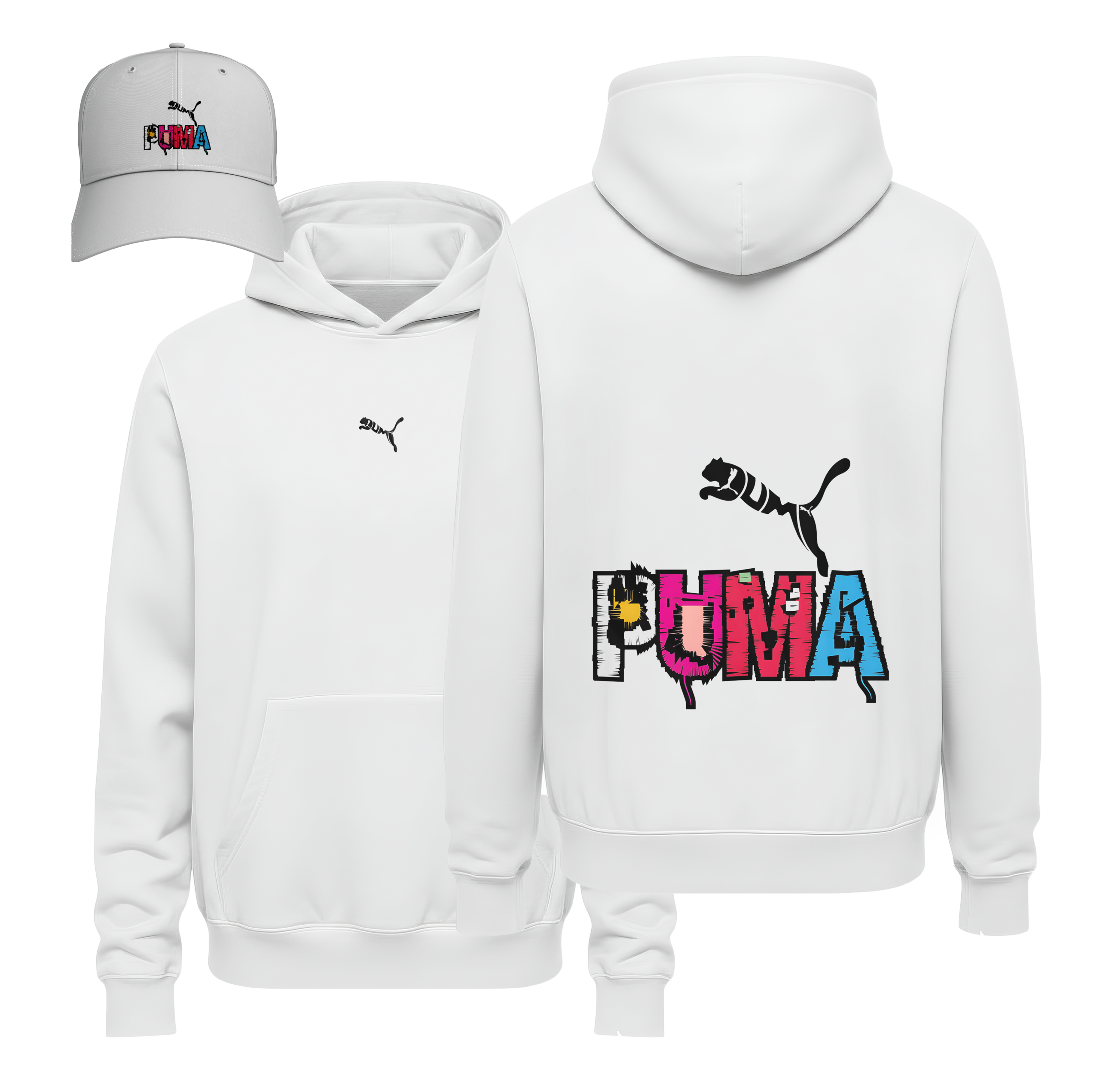 Coordinated Abstract Gear: Each bundle includes the premium white hoodie and a matching structured cap featuring the full, colorful “Puma X Jump” collage icon for a unified aesthetic.